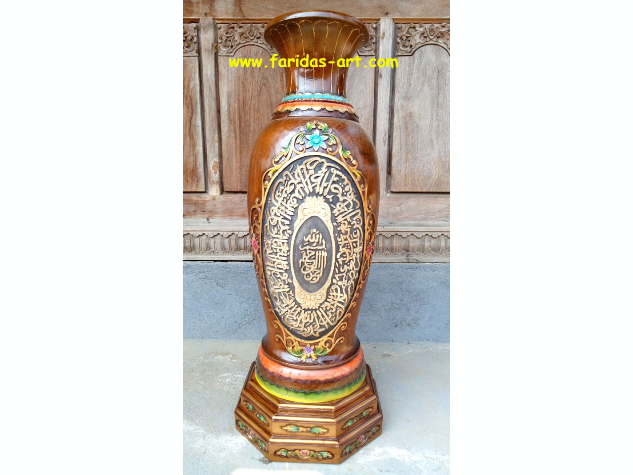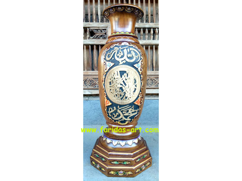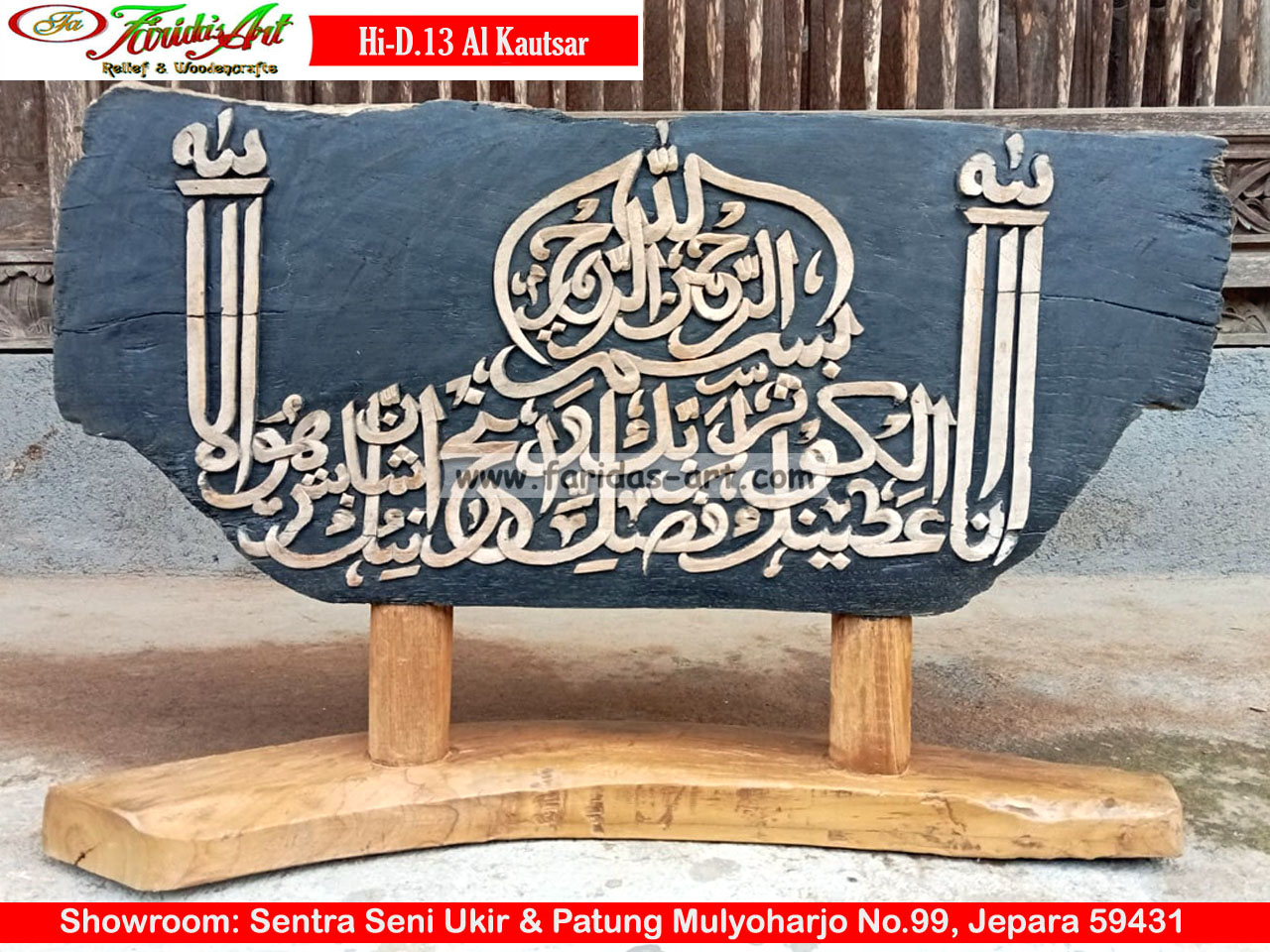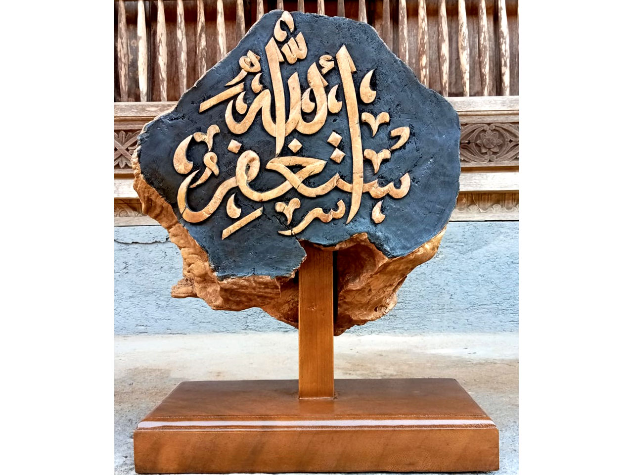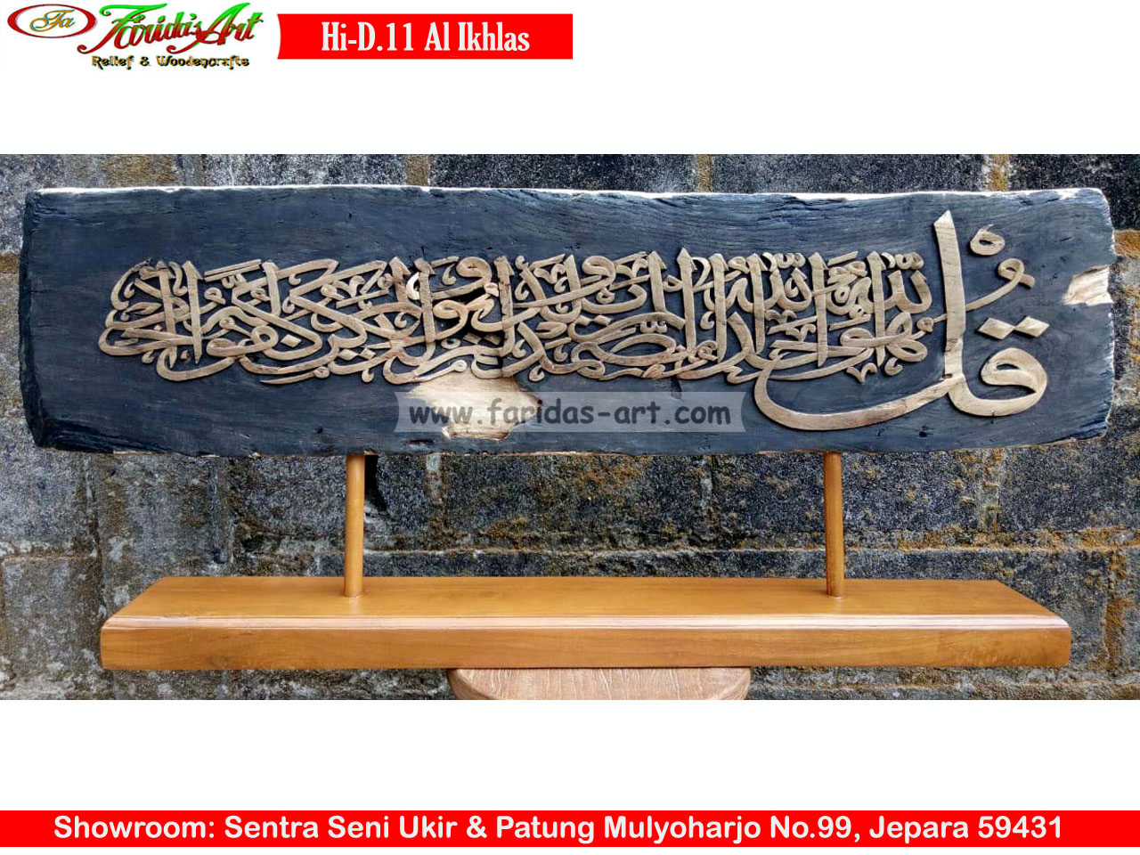 Hiasan Meja ini terbuat dari kayu jati erosi (pengikisan kayu secara alami) yang di ukir dengan motif kaligrafi lafadz 'Syahadat' sehingga tampak Natural dan Artistik. Ini cocok dikoleksi sebagai hiasan meja yang bernuansa religi tapi tetap artistik sehingga mempercantik interior dan memberi nuansa kesejukan bagi rumah Anda.